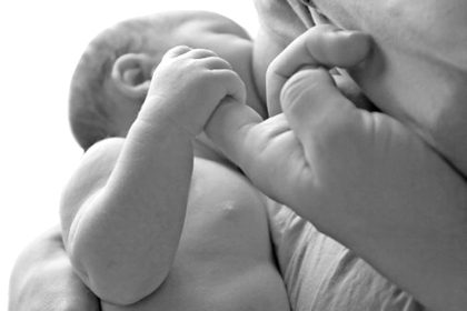 Newborn Holding Mothers Finger while Nursing
